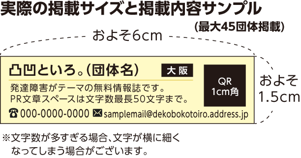 悩んだ末、今後は自助会の情報は広告としてではなく、情報として各団体様最小限のサイズとなってしまいますが、できる限り多くの情報を掲載する方向に転換することにいたしました。